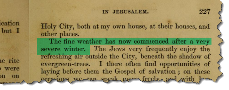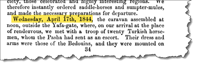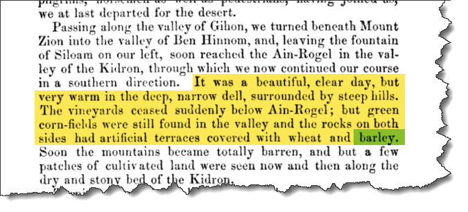 to have sent at least one person to Israel or Jerusalem in the spring of 1844. God, knowing this controversy would be brewing years later, would not only have sent someone to Israel, but He would've also inspired this individual to document the harvest in 1844. So, I dedicated around five months of my life to researching the truth of the 1844 Biblical calendar. This was my